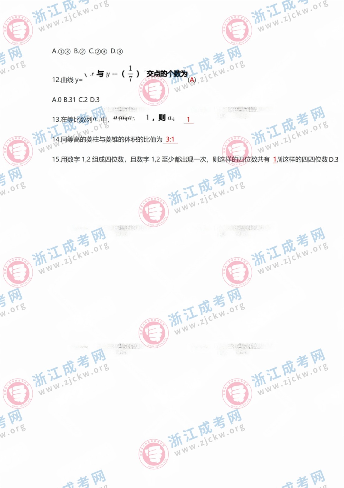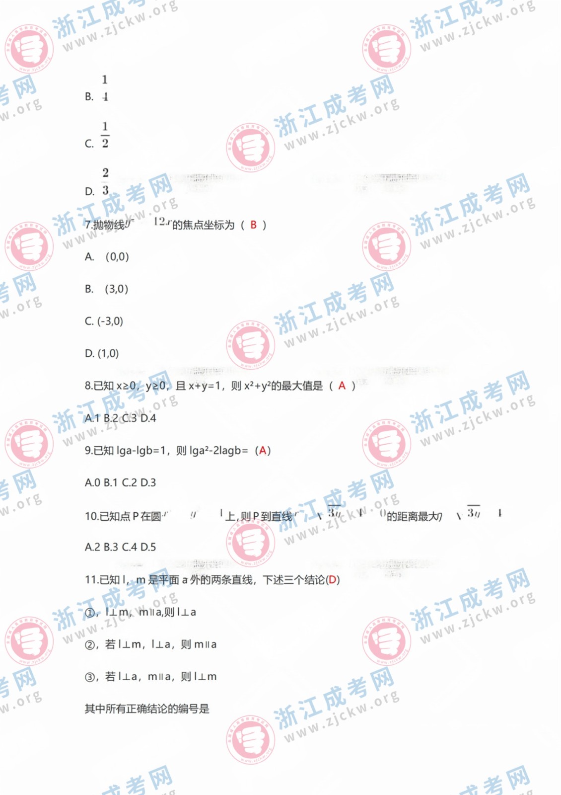 浙江成考網(wǎng)為廣大考生提供2024年成人高考全國統(tǒng)一考生(高起點(diǎn)數(shù)理)真題答案