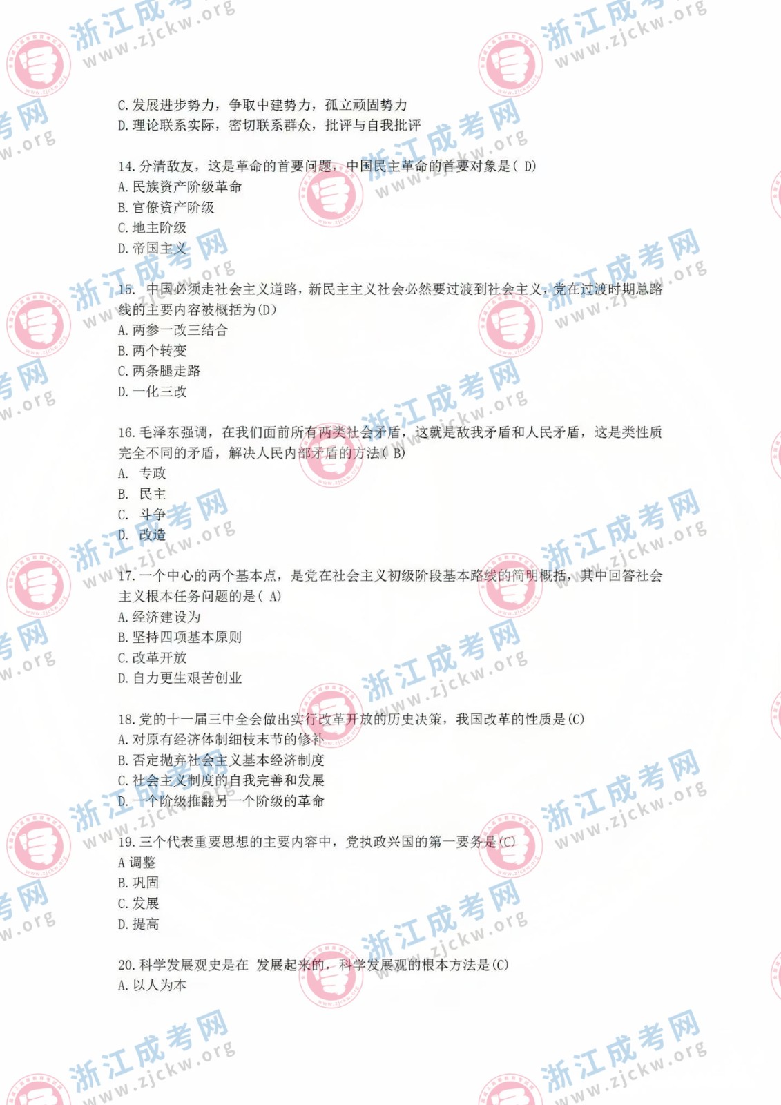 杭州成考網(wǎng)為廣大考生提供2024年成人高考全國統(tǒng)一考試(專升本政治)真題答案