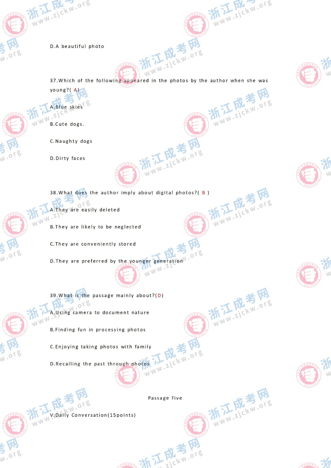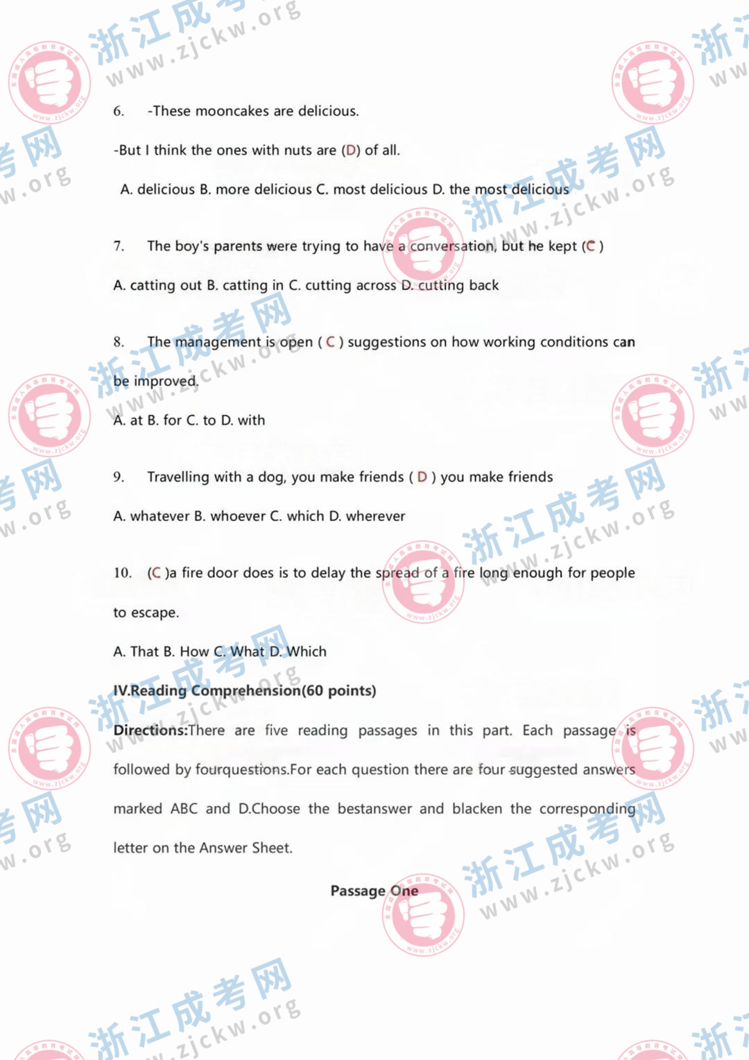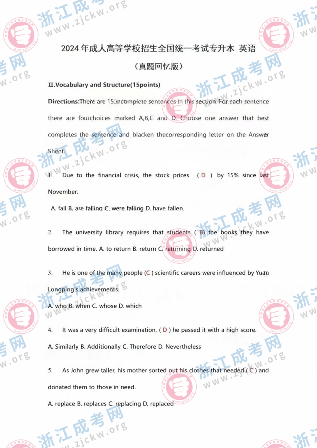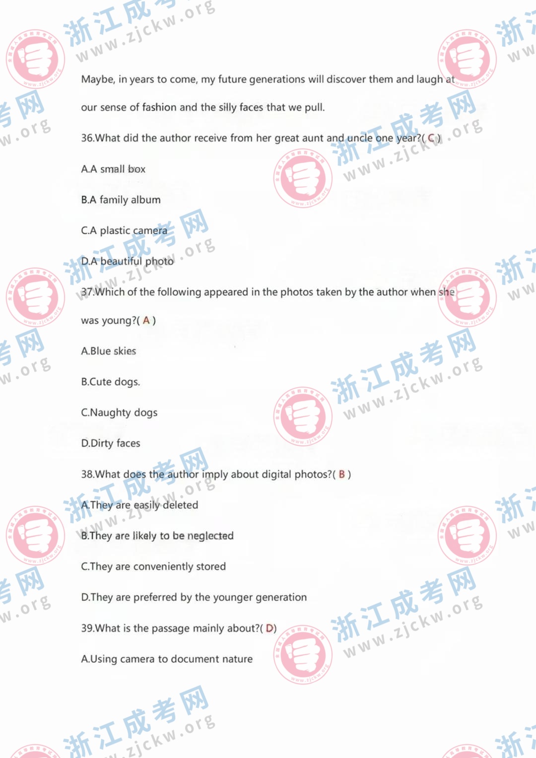 杭州成考網(wǎng)為廣大考生提供2024年成人高考全國統(tǒng)一考試(專升本英語)真題答案